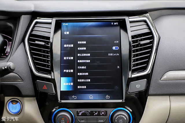 除此之外,这块屏幕还能对车辆功能进行设置,车辆的行驶能量图、动能回收设定等都可以在这块屏幕上进行更改和查看。