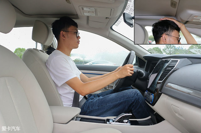 乘坐空间方面,身高183cm的体验者坐在驾驶位,调节座椅到标准坐姿。头部几乎蹭到车顶,好在天窗开辟了一定空间。