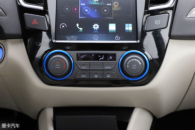 空调控制面板由双旋钮加物理按键组成,在按键的上方有一块并不大的液晶屏,可显示空调状态。