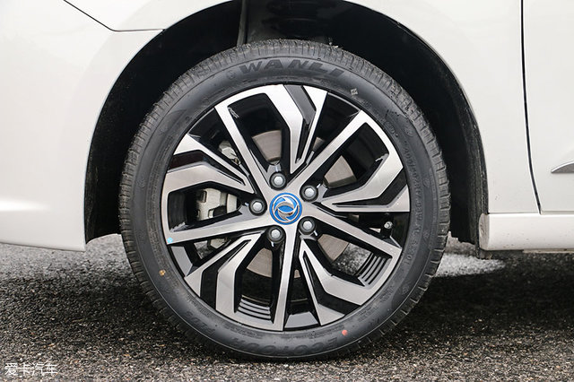 轮胎方面,高配版配备了17寸飞刃式铝合金轮圈。轮胎来自国产品牌万力,轮胎规格为205/50 ZR17。