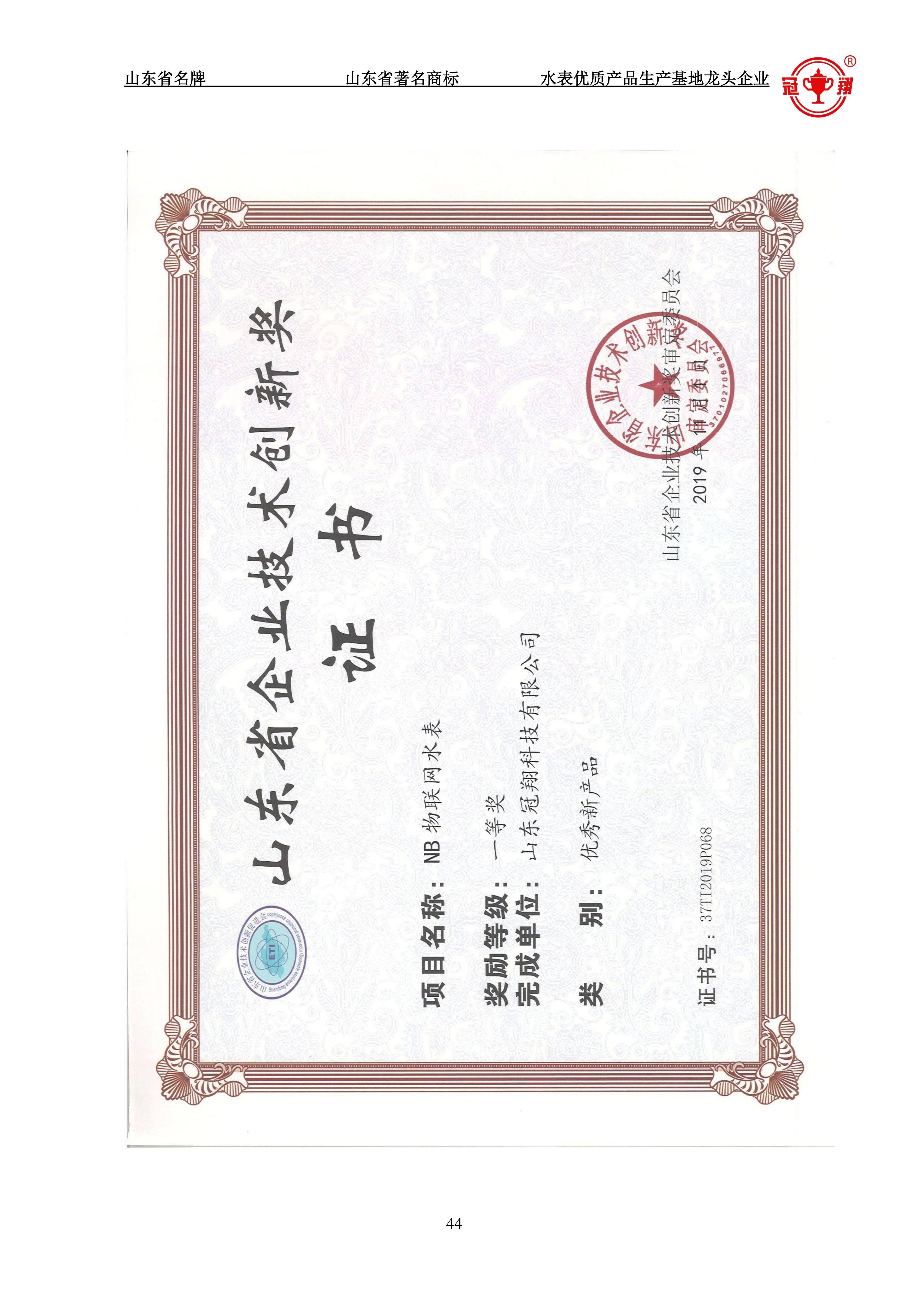 深厚的技术积淀与标准引领:作为NB-loT水表自动抄表系统安装、验收与使用标准起草单位,其技术规范性和行业引领作用突出。拥有多项国家发明专利和实用新型专利,产品连续8年国抽合格,“冠翔”牌是“山东省著名商标”、“山东名牌”。