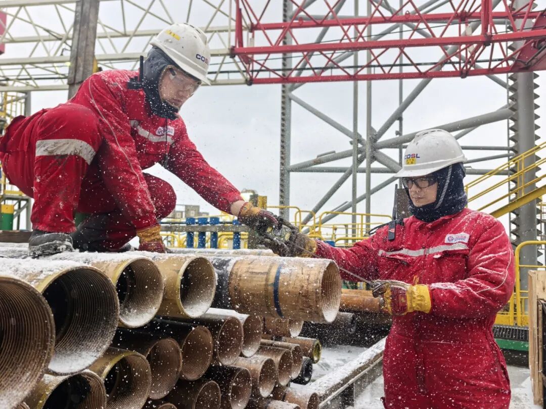 暴雪来袭,“海洋石油941”钻井平台迅速行动,全体人员坚守岗位、协同发力,保障海上钻井作业安全平稳推进。