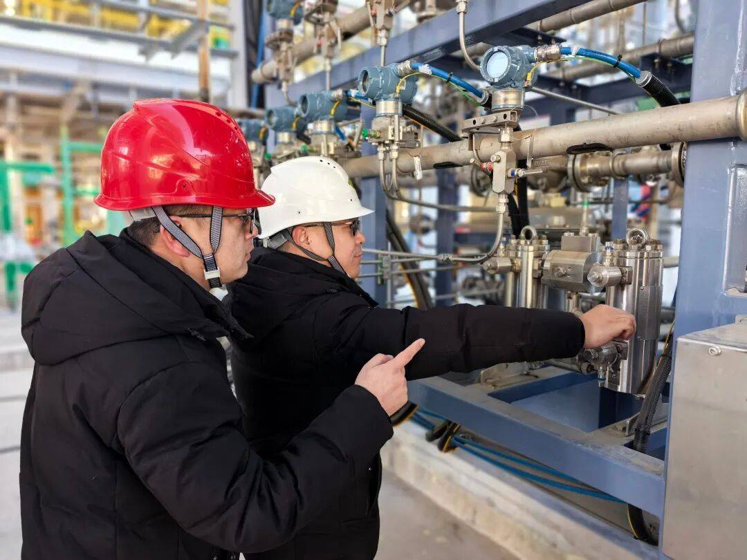 在赛鼎公司相变储能材料基地现场,工作人员正在进行设备检修工作。为确保项目节假日安全平稳生产,广大建设者以“舍小家为大家”的担当坚守一线,保质量,促生产,全力以赴确保项目安全稳定运行。