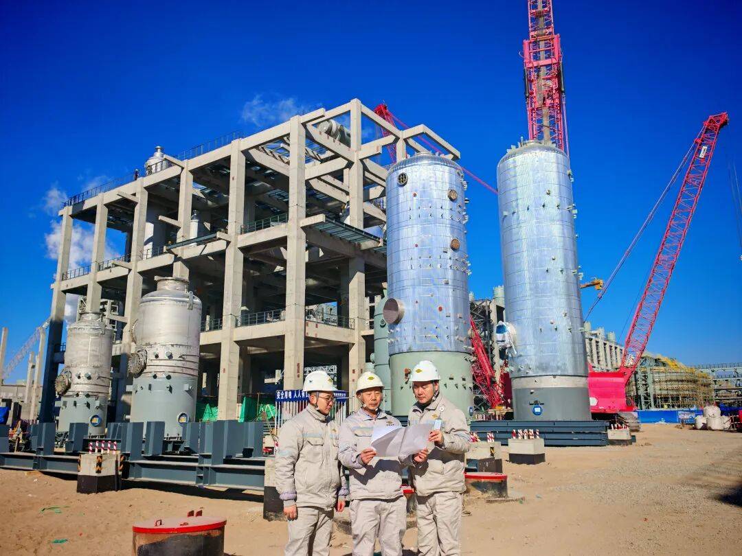 在五环公司神华包头煤制烯烃升级示范项目现场,当前已全面进入安装阶段。CO₂压缩厂房、冷冻站压缩厂房基本封闭,管道预制达两万达因,设备到货率92%,安装就位完成率80%。正值10台塔器吊装攻坚期,项目团队坚守岗位、恪尽职守,严守“安全第一”原则,全力保障大件吊装安全可控,为项目建设稳步推进保驾护航!
