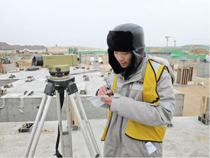 在四化建陕煤榆林化学脱盐水项目现场,土建技术员春节期间坚守岗位,严谨开展凝液及化学品注入单元立式储罐设备基础标高复测,以精益求精筑牢工程质量防线,用专业担当守护项目建设安全平稳,以实干坚守诠释责任与奉献。